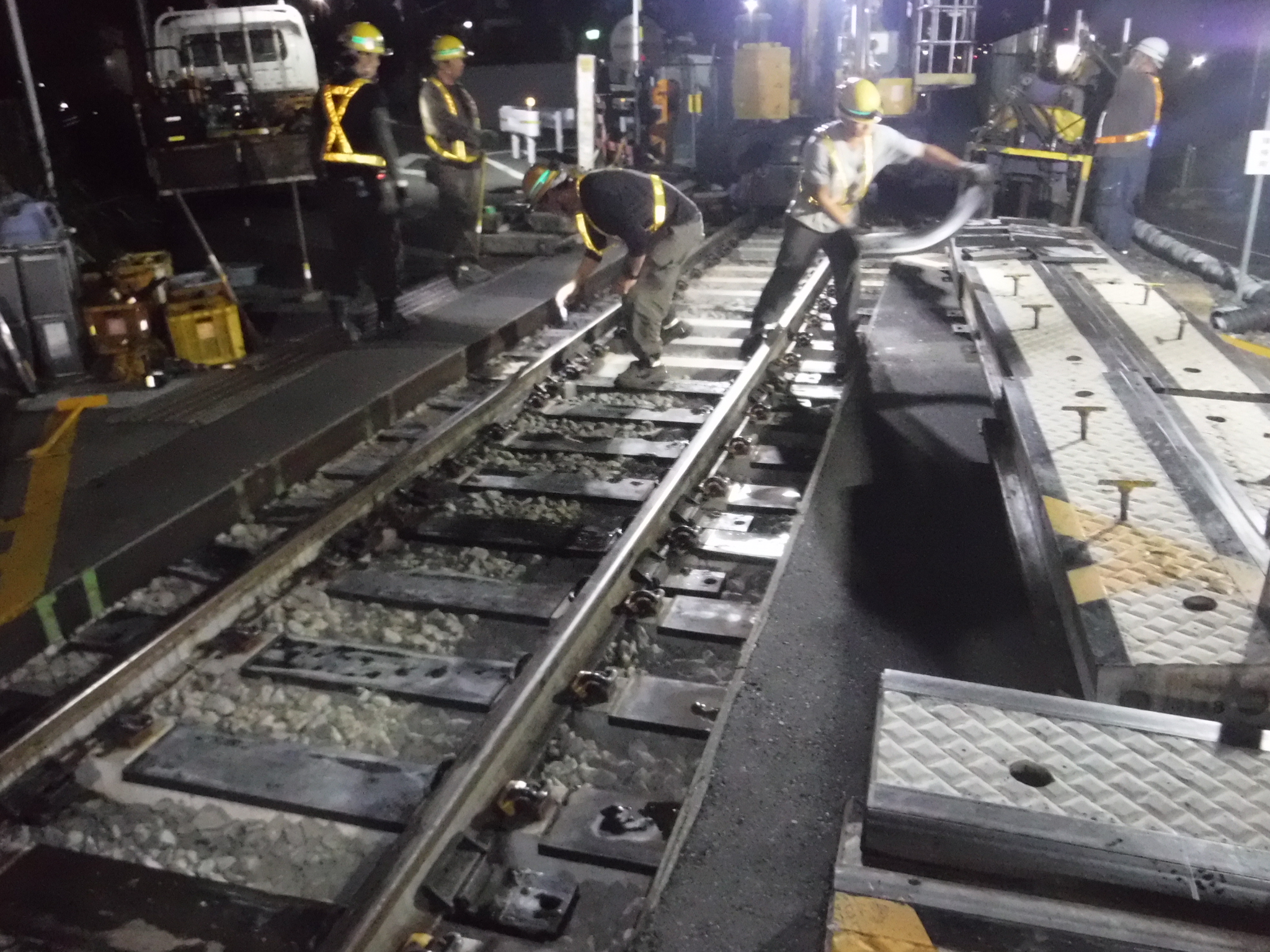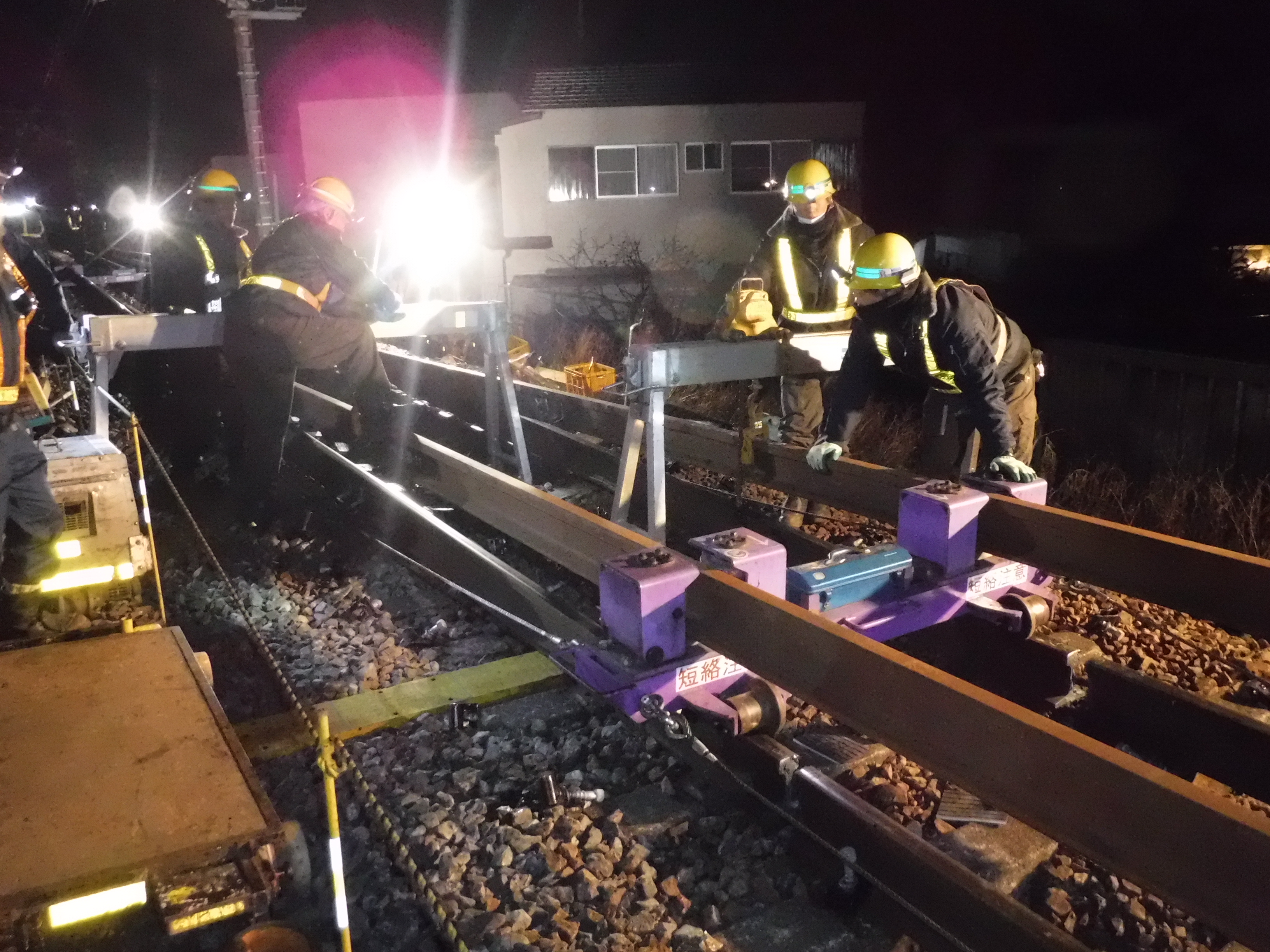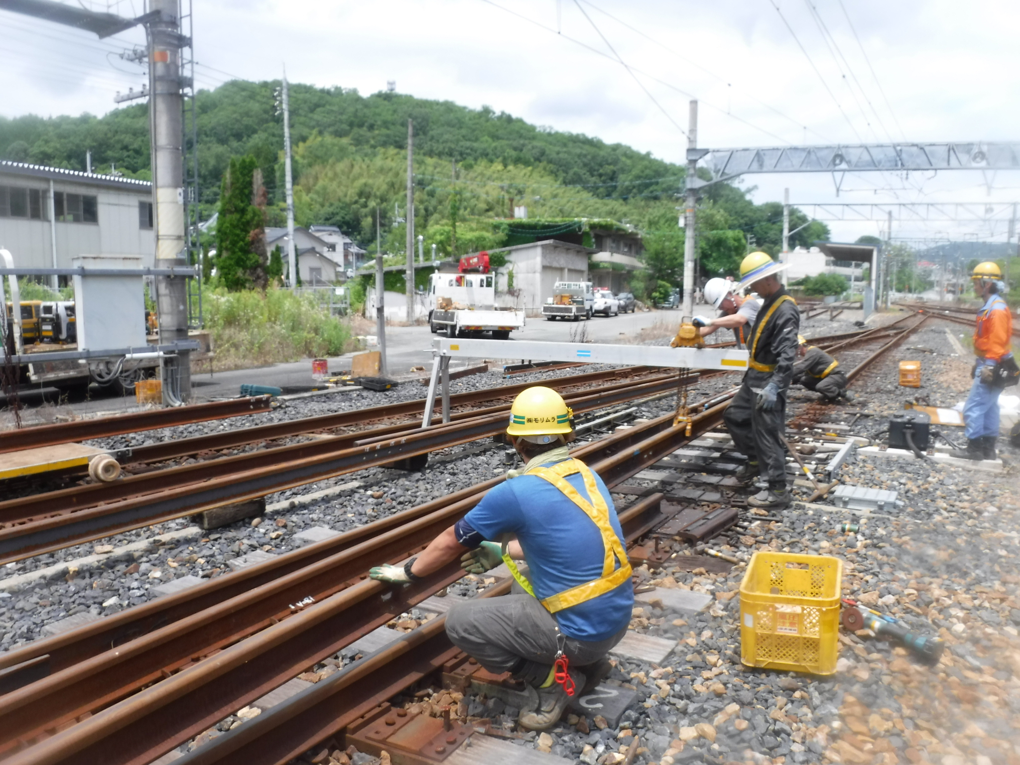 当社理念である『全てにおいて安心して任せられる安全第一の会社を目指して』をモットーに、古くなったレールの交換や、付属品の交換、列車の往来により下がった軌道をこう上しつき固めるなど線路保全に繋がる工事施工を担当しております。