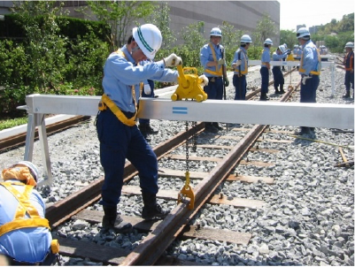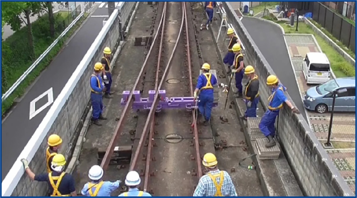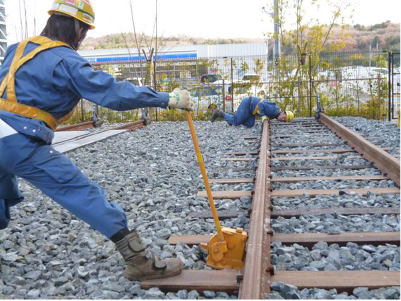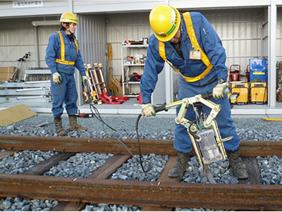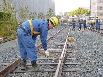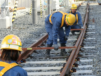 レールは、列車が直接触れているので少しずつ摩耗し、傷がつき劣化していくため定期的に交換が必要となります。交換については、部分的にレールを交換するものから、専用のレール交換器で数百メートルを一度に交換するものまでさまざまな方法があります。