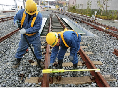 列車の安全を守るためには、線路が常に良好な状態に保守されていることが必要です。そのため、様々な測定器具を使用して検測し、線路のゆがみを調べ、正常な状態を保つようにメンテナンスしています。