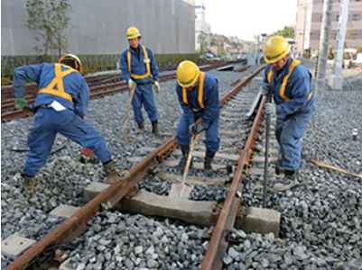 線路は列車が走るたび、「枕木」が劣化し、「バラスト」が砕け、「レール」が磨耗し歪んでいきます。そこで必要となるのがこれらを交換、修繕するメンテナンス工事です。