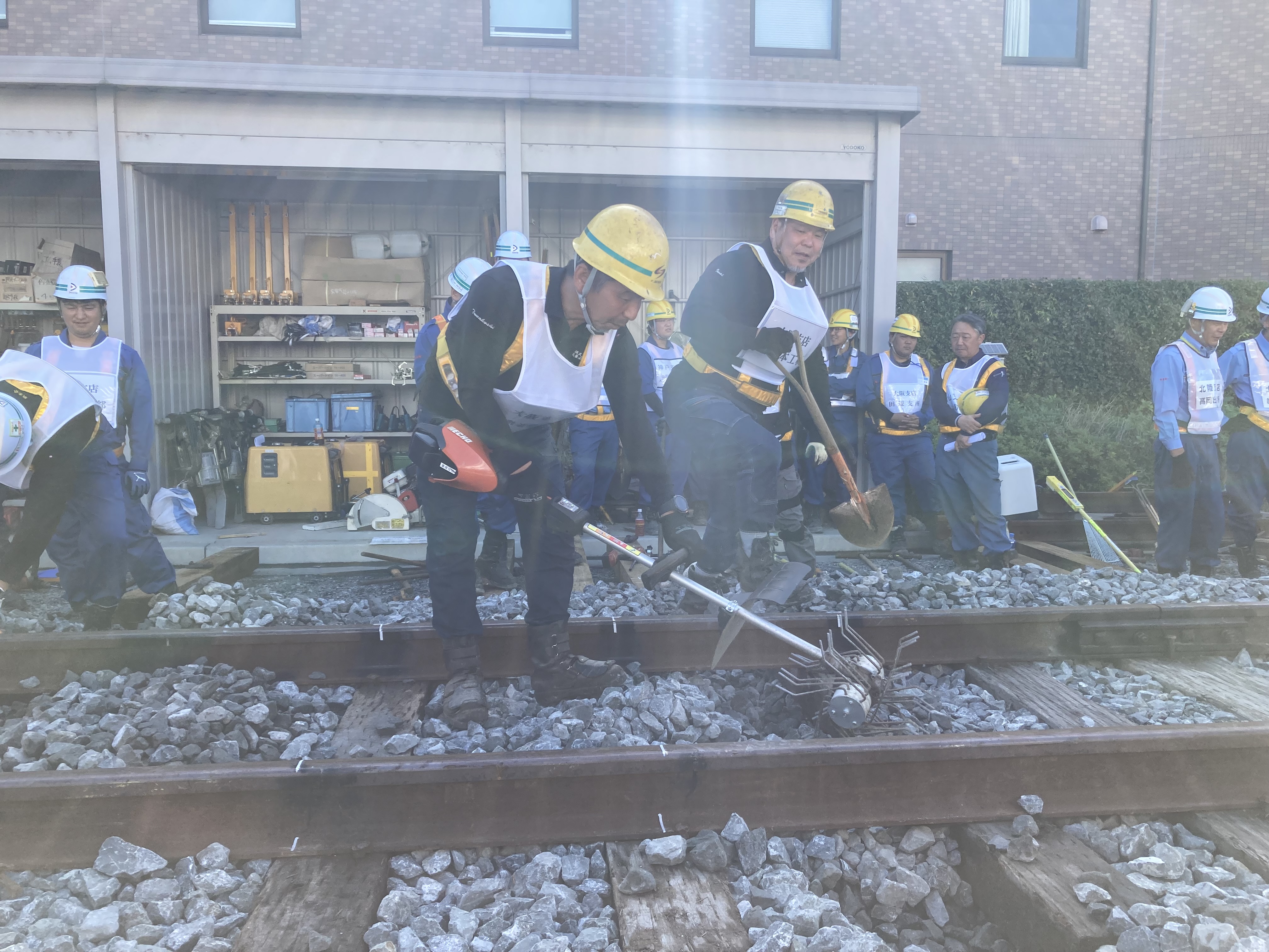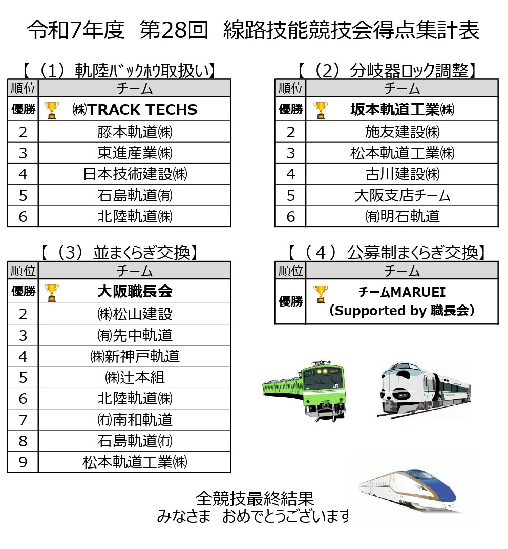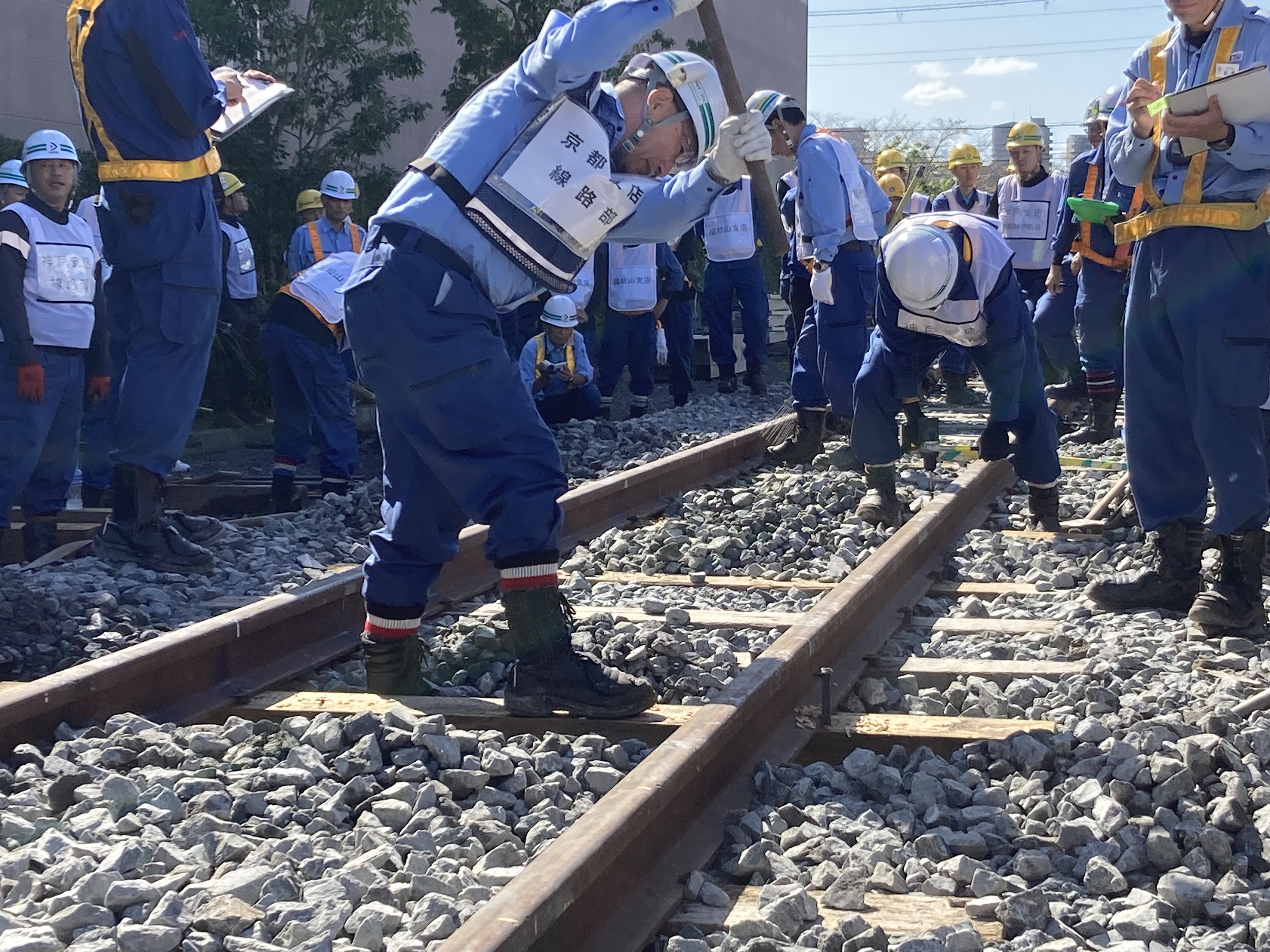 並まくらぎ2本を「寄せ落とし法」で交換し、基本動作・安全性・品質・迅速性を競いました。悲願の優勝達成