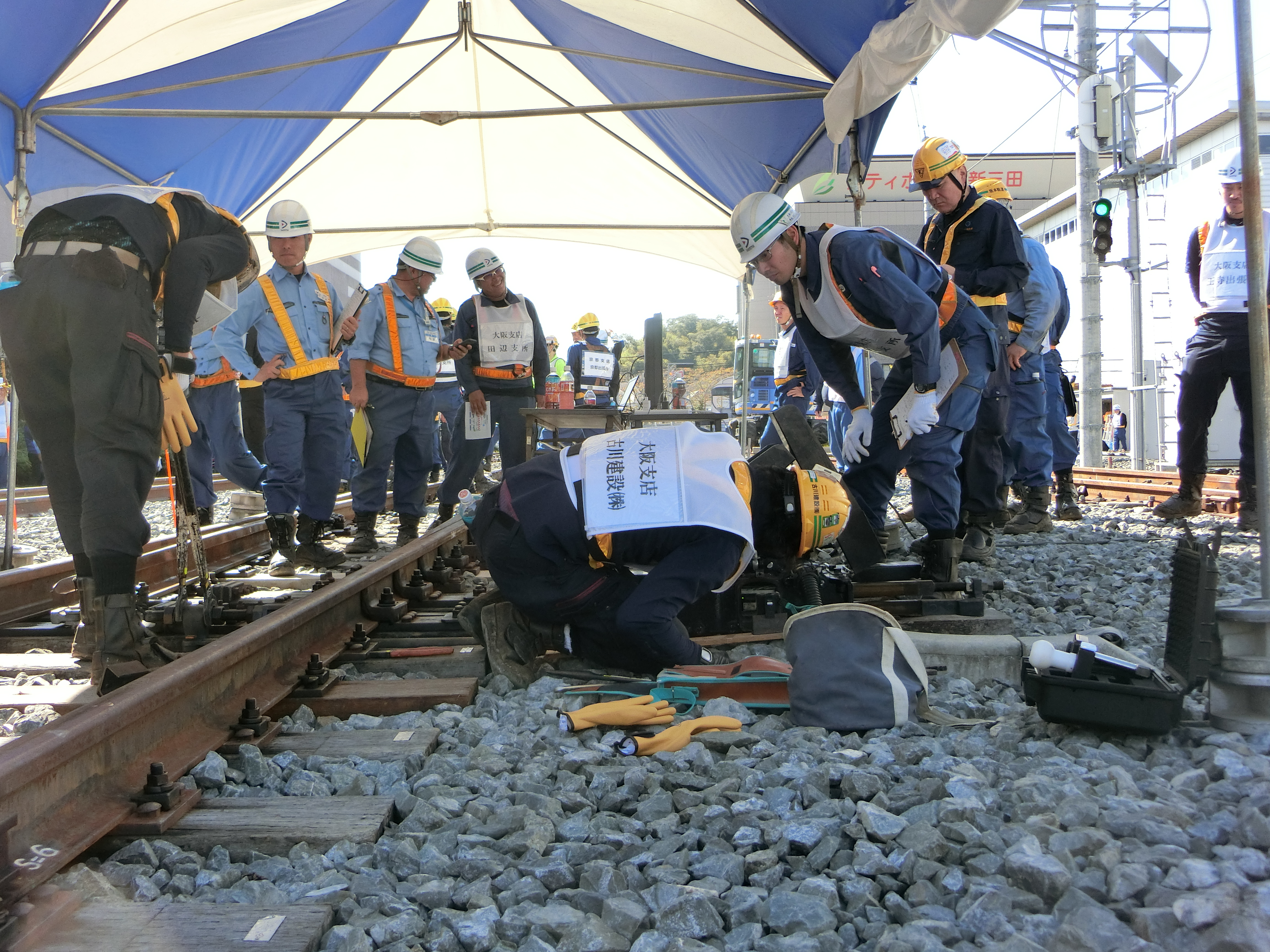 分岐器ロックを狂わせた状態で、ロック調整を行い、不適合箇所を復旧し、基本動作・迅速性を競いました。