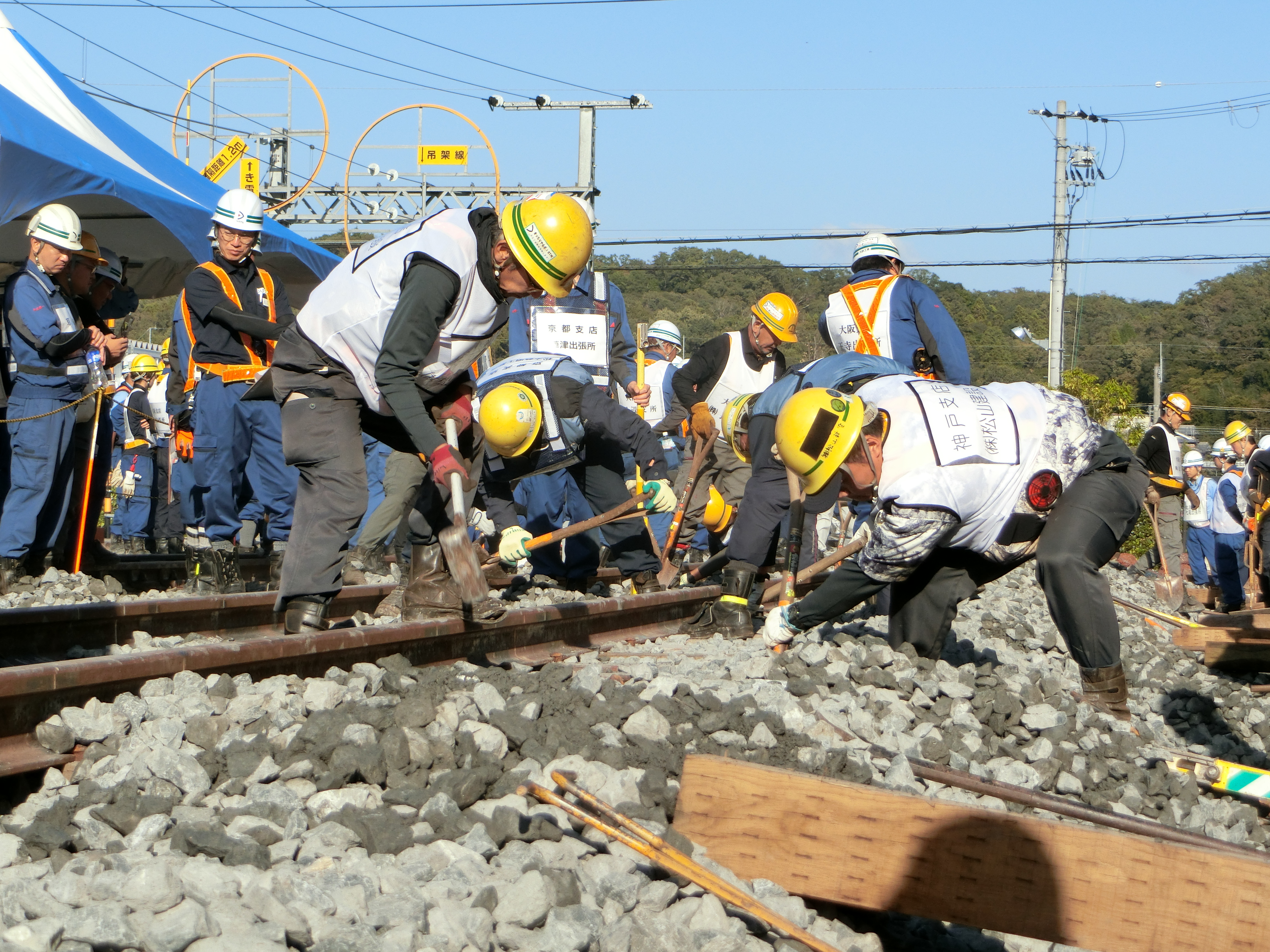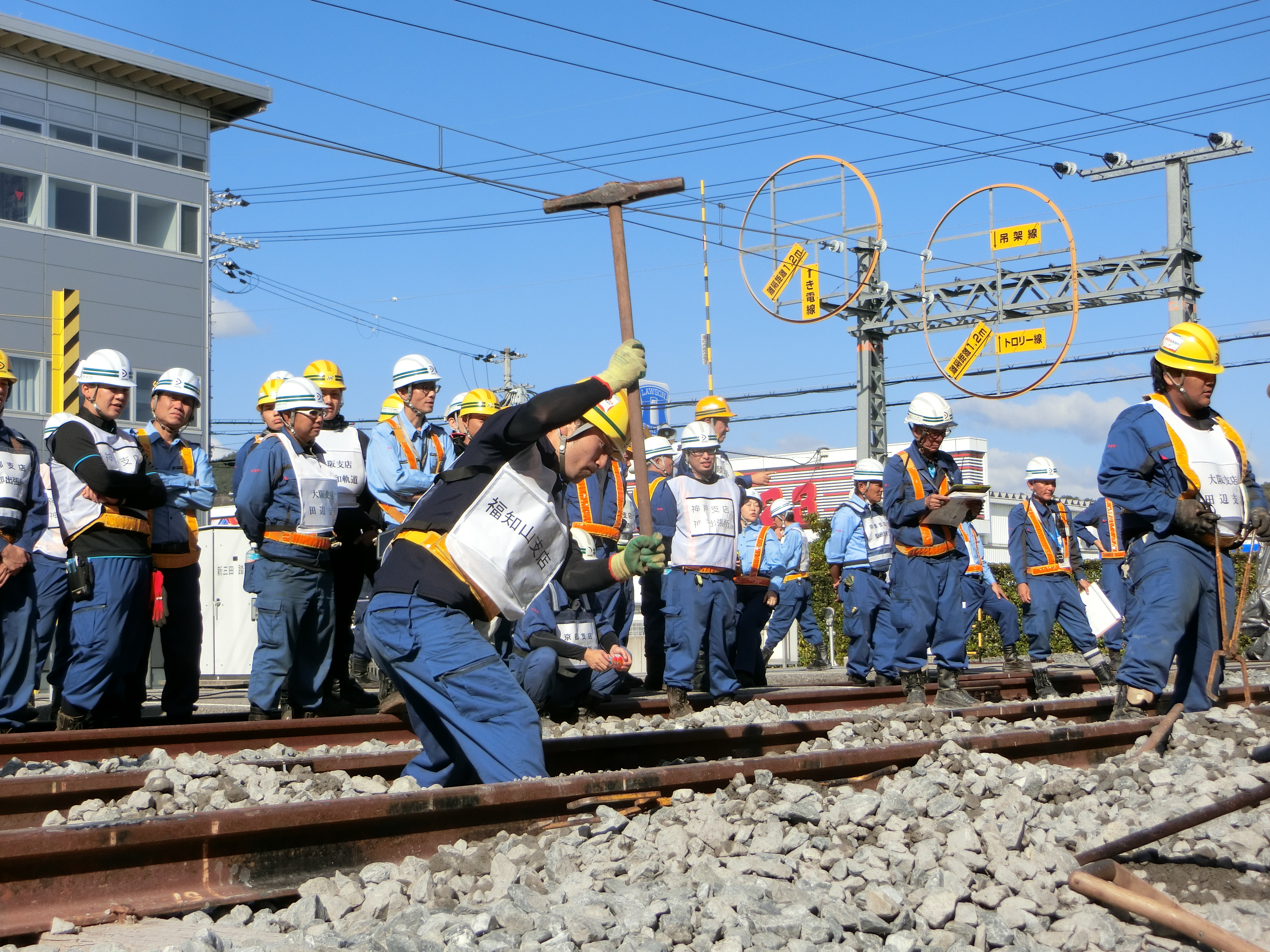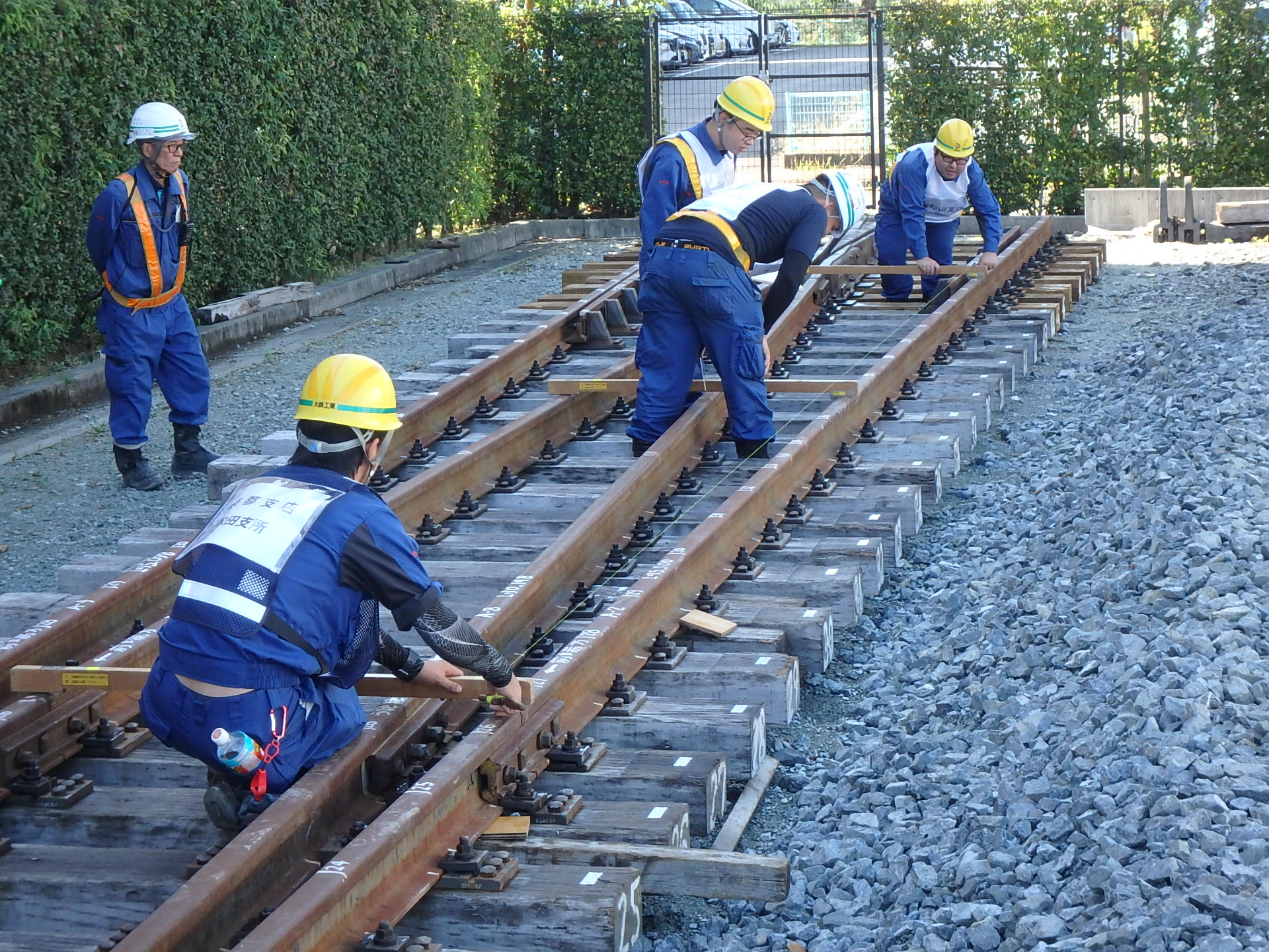 並まくらぎ2本を「寄せ落とし法」で交換し、基本動作・安全性・品質・迅速性を競いました。悲願の優勝達成